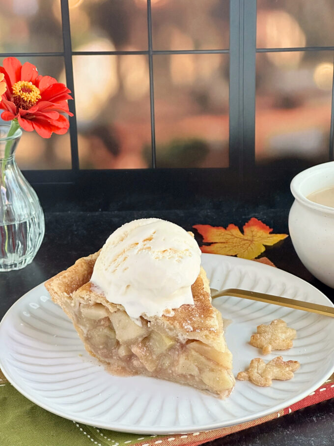 I can’t think of anything better than the aroma of a homemade apple pie wafting through the air as it’s cooling from the oven. I think it’s the perfect pie to welcome fall. So, if you’re feeling fall vibes, you need to make this scrumptious pie!