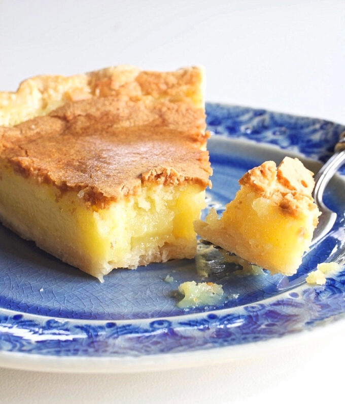 You might think you’re looking at a piece of Chess Pie in the picture above. I’ll agree it does look like a piece of chess pie, but it’s not. You might also wonder if this is could be a piece of Pecan Pie without the pecans, but it’s not. It’s actually Transparent Pie. While it’s more similar to chess than pecan pie, it’s not exactly like either one.