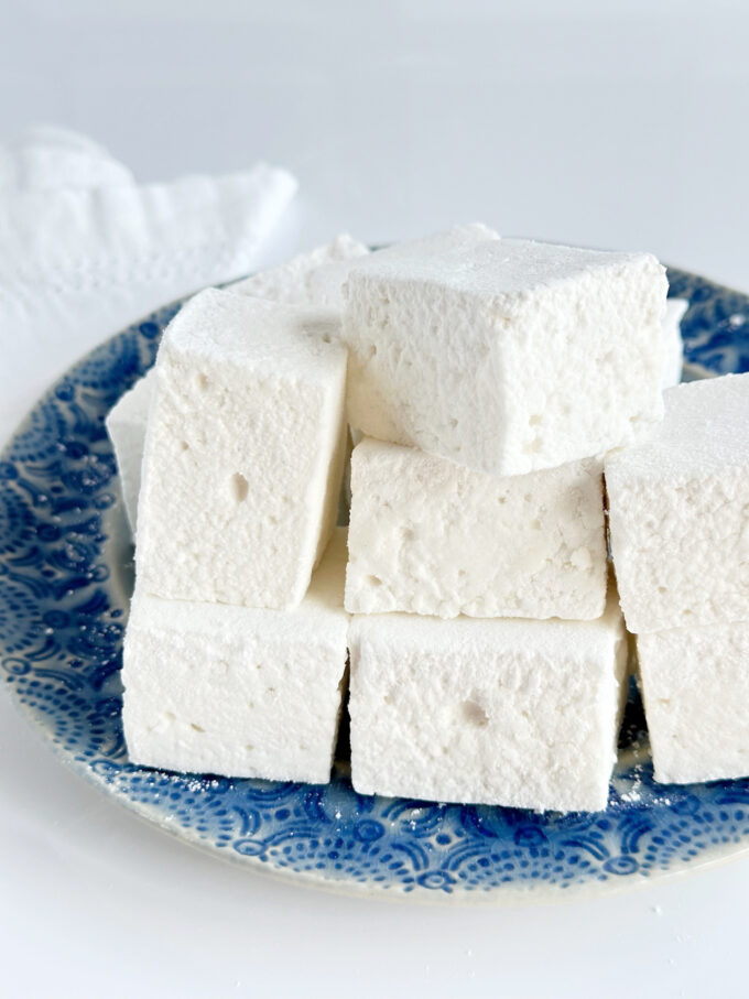 These Vanilla Marshmallows are pillowy soft and flavored with pure vanilla extract. They are perfect in hot chocolate or by simply eating as a sweet indulgence.
